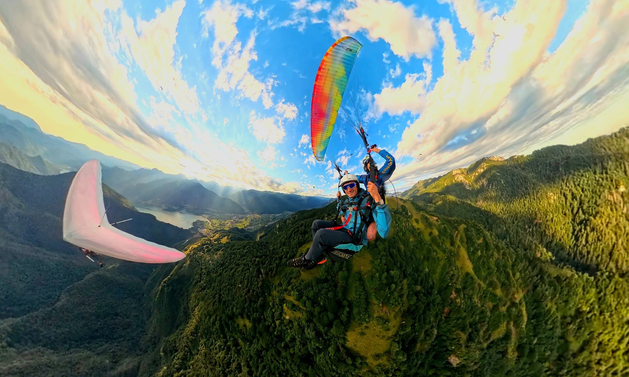 A gentle flight that allows you to admire the peaks and alpine landscapes in complete safety, accompanied by a professional.