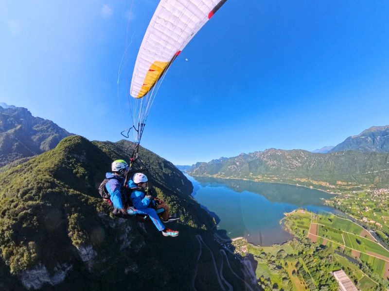 The tandem paragliding flight over Lake Idro is ideal for children and teenagers aged 6 to 12 who wish to experience the thrill of gliding in complete safety. No particular physical preparation is required, only the desire to experience a moment of pure magic and liberation, accompanied by a professional pilot.
