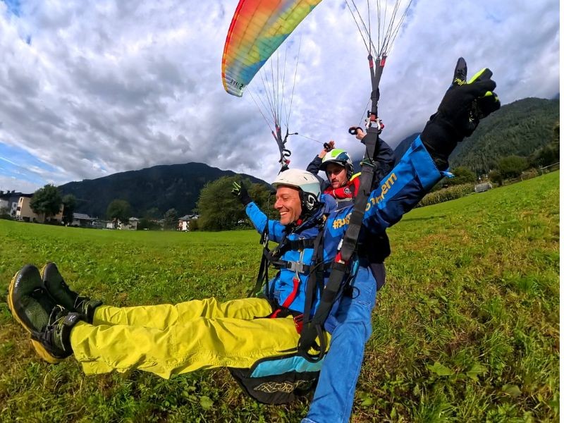 Il volo in parapendio tandem da Doss del Sabion combina adrenalina e emozione pura, regalando una prospettiva unica sulle montagne del Trentino. L’atterraggio sicuro, accompagnato dal tuo istruttore, avviene nella Val Rendena, lasciandoti con il cuore colmo di ricordi indelebili, la sensazione di libertà assoluta e la voglia di ripetere subito questa incredibile avventura in parapendio a Madonna di Campiglio.
